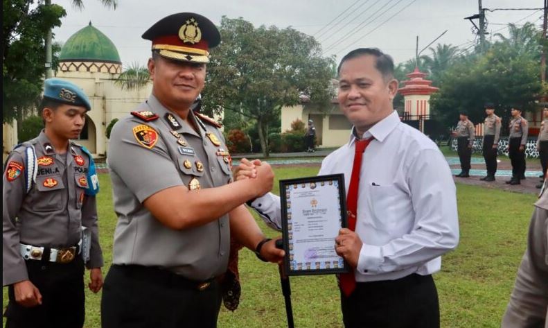 SAROLANGUN — Kepolisian Resor Sarolangun menggelar upacara pemberian penghargaan dan penyerahan tanda kehormatan kepada personel berprestasi di halaman Mapolres Sarolangun, Rabu (29/01/2026) pagi.