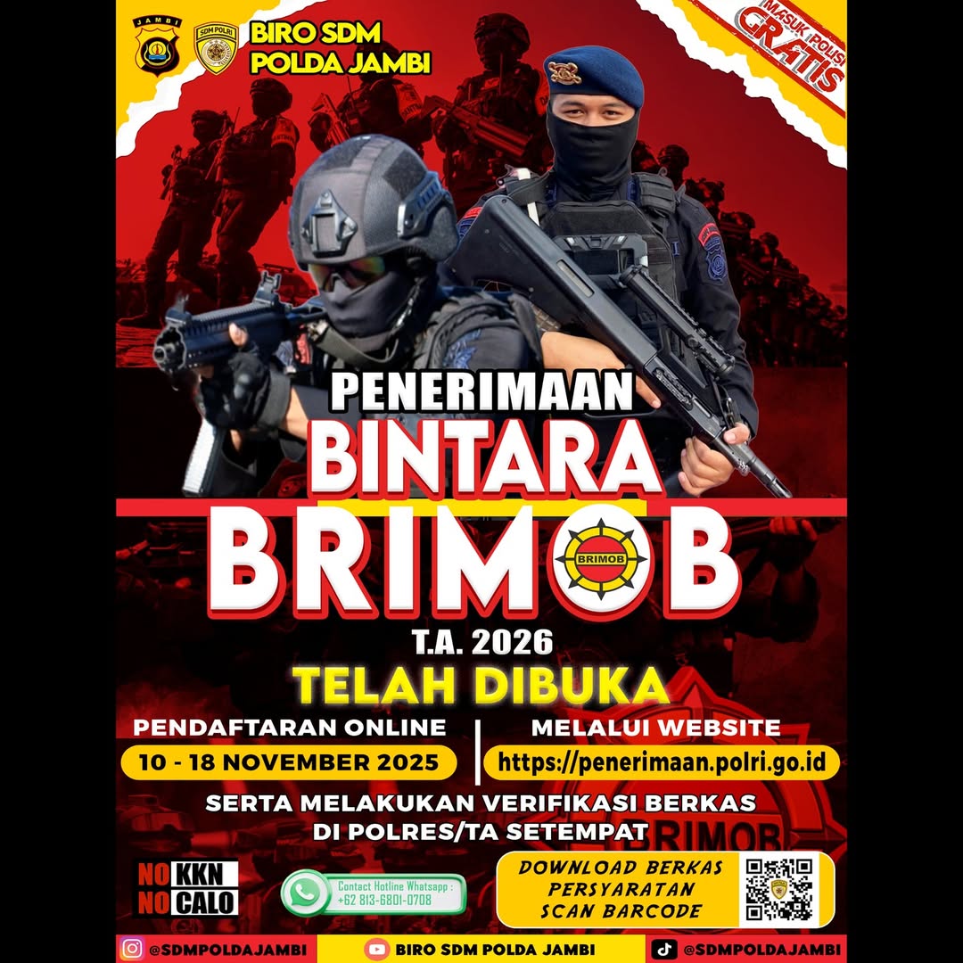 Kepolisian Negara Republik Indonesia kembali membuka kesempatan bagi generasi muda untuk bergabung sebagai anggota Polri melalui Penerimaan Bintara Brimob Tahun Anggaran 2026. Rekrutmen ini menjadi bagian dari upaya strategis Polri dalam memperkuat sumber daya manusia, khususnya pada satuan Brigade Mobil (Brimob) yang memiliki peran vital dalam menjaga stabilitas keamanan dan ketertiban di seluruh wilayah Indonesia.