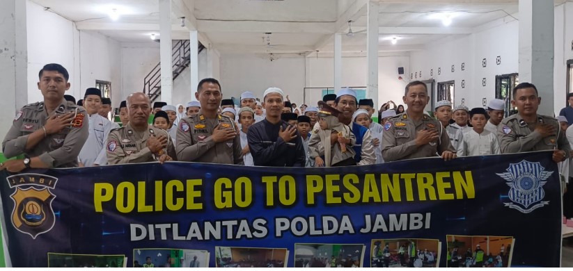 Jambi – Direktorat Lalu Lintas (Ditlantas) Polda Jambi melalui Subdit Kamsel yang diwakili oleh AKP Fidel bersama anggota melaksanakan kegiatan Police Go To Pesantren, Kegiatan ini berlangsung di Pondok Pesantren Arrahmah Kota Jambi dengan diikuti oleh para santriwan dan santriwati, Senin (29/9/2025).