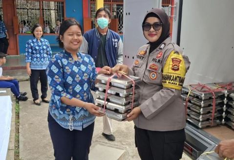 Bungo — Bhabinkamtibmas Kelurahan Cadika dan Dusun Sungai Buluh, Brigpol Yossy Wulandari, melakukan pendampingan terhadap petugas SPPG Polres Bungo dalam kegiatan pembagian makanan bergizi kepada siswa-siswi SMP Xaverius Muara Bungo, Senin (8/12/2025). Kegiatan berlangsung sejak pukul 09.00 WIB dan merupakan bagian dari pembinaan wilayah Polsek Muara Bungo.