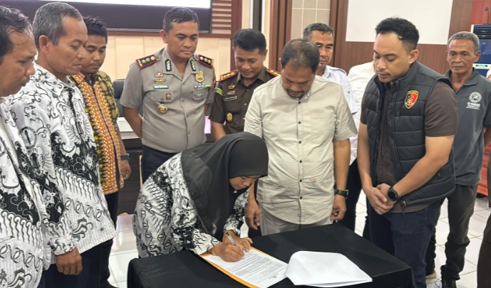 Tribratanewsjambi-Polres Muaro Jambi melaksanakan kegiatan mediasi dalam rangka penerapan Restoratif Justice terkait penanganan perkara dugaan tindak pidana kekerasan terhadap seorang siswa yang melibatkan guru honorer SD Negeri 21 Desa Pematang Raman, Kecamatan Kumpeh, Kabupaten Muaro Jambi, pada Rabu (21/1/2026)