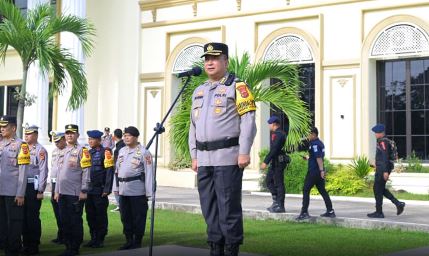 Jambi – Polda Jambi melaksanakan Apel Persiapan Pengamanan Malam Natal Tahun 2025 di Lapangan Hijau Mapolresta Jambi, Rabu (24/12/2025), sebagai bentuk kesiapan personel dalam memberikan rasa aman dan nyaman bagi umat Kristiani yang melaksanakan ibadah Natal.